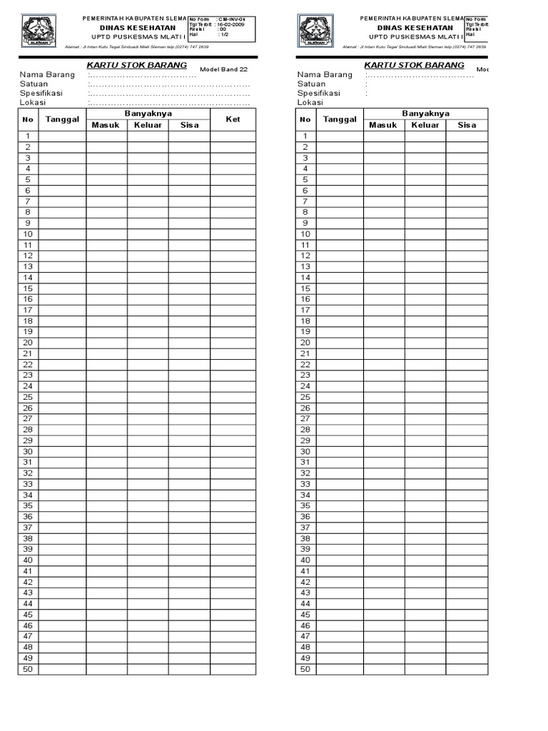 10 aplikasi stok barang gudang gratis terbaik downloadsoftwaregratisan com. Dilakukan oleh teknisi bila ada perbaikan terhadap barang yang rusak dan dilaporkan kepada koordinator lab. 5 cara terbaik mengelola stok barang dan bahan baku bisnis kafe. Belanja sekarang juga hanya di bukalapak. Mengelola kartu persediaan barang dagang a. Kode lokasi jenis nomor tahun status tanah kode letak/ sertifikat no. Formstok awal (stok gudang) form ini hanya bisa digunakan, dan di editoleh owner, dimana stok ini adalah stok besar gudang, dan juga stok awal Jadi ketika ada barang masuk maka akan mena. Belanja premium harga cetak kartu stok persediaan barang kartu iuran kartu ab. Buat sheet dengan nama 'data barang'. Aplikasi akuntansi excel program siap pakai gratis aplikasiakuntansiexcel com. 8 2 lampiran 52 contoh kartu inventaris barang (kib) a tanah kartu inventaris barang (kib) a tanah provinsi kab./kota kecamatan bidang unit organisasi subunit organisasi u p b / sekolah no. Lalu buat tabel dengan judul kolom berupa kode, nama barang, stok.